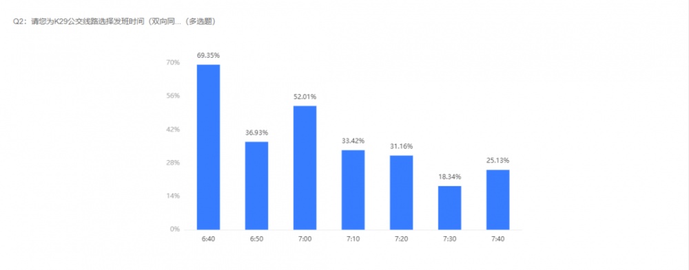 2022年11月18日,市公交集團對《K29公交線路運行方案》進行了問卷調查,截止2022年11月23日12時,本次問卷調查結束。K29公交線路開通時間擬定為2022年11月28日,營運方案以市民投票結果執(zhí)行。