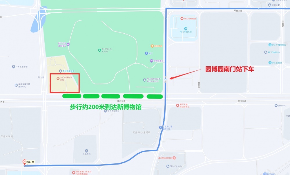 乘坐68路公交車(客運(yùn)北站東—雙喜小學(xué))到園博園南門站下車,然后沿漳河大道往西步行約200米到達(dá)新博物館;68路線運(yùn)營時(shí)間6:12-18:20,班次間隔18-30分鐘。