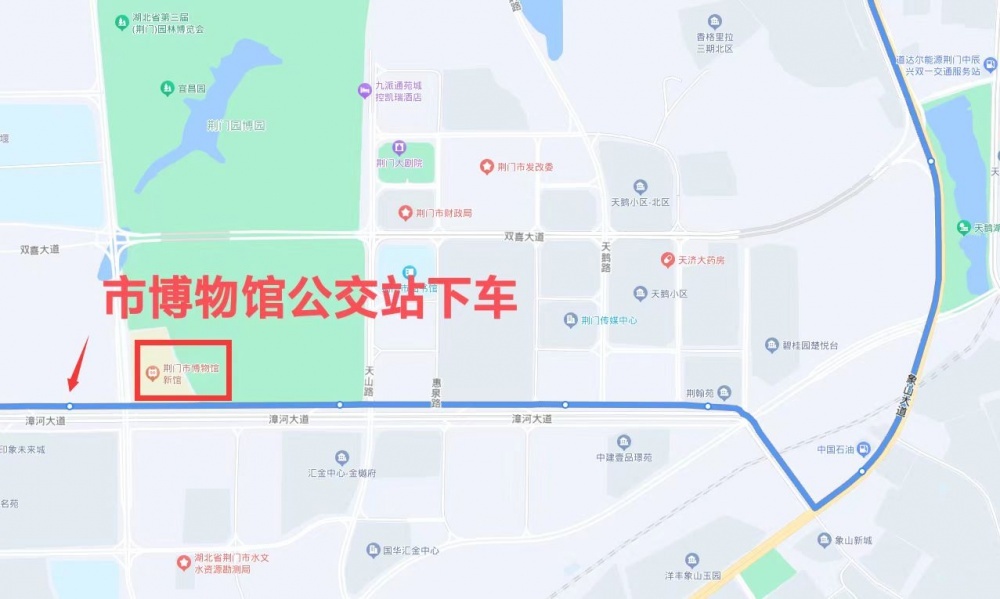 乘坐21路公交車(龍泉中學(xué)—漳河旅游碼頭)到漳河大道市博物館公交站點(diǎn)下車;21路線運(yùn)營時(shí)間5:50-18:20,班次間隔20-25分鐘。