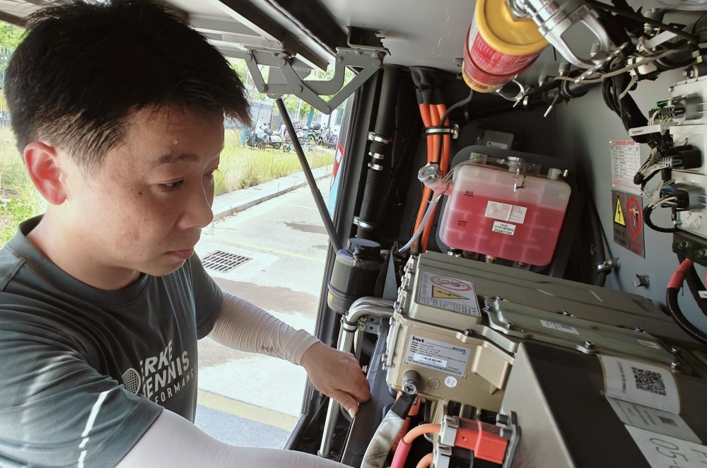 大太陽(yáng)底下,他仔細(xì)檢查每一處,就為了保障公交車(chē)能順順當(dāng)當(dāng)跑。