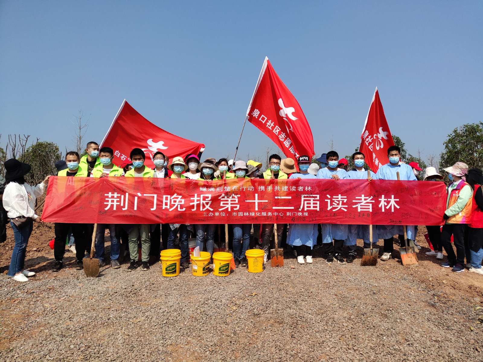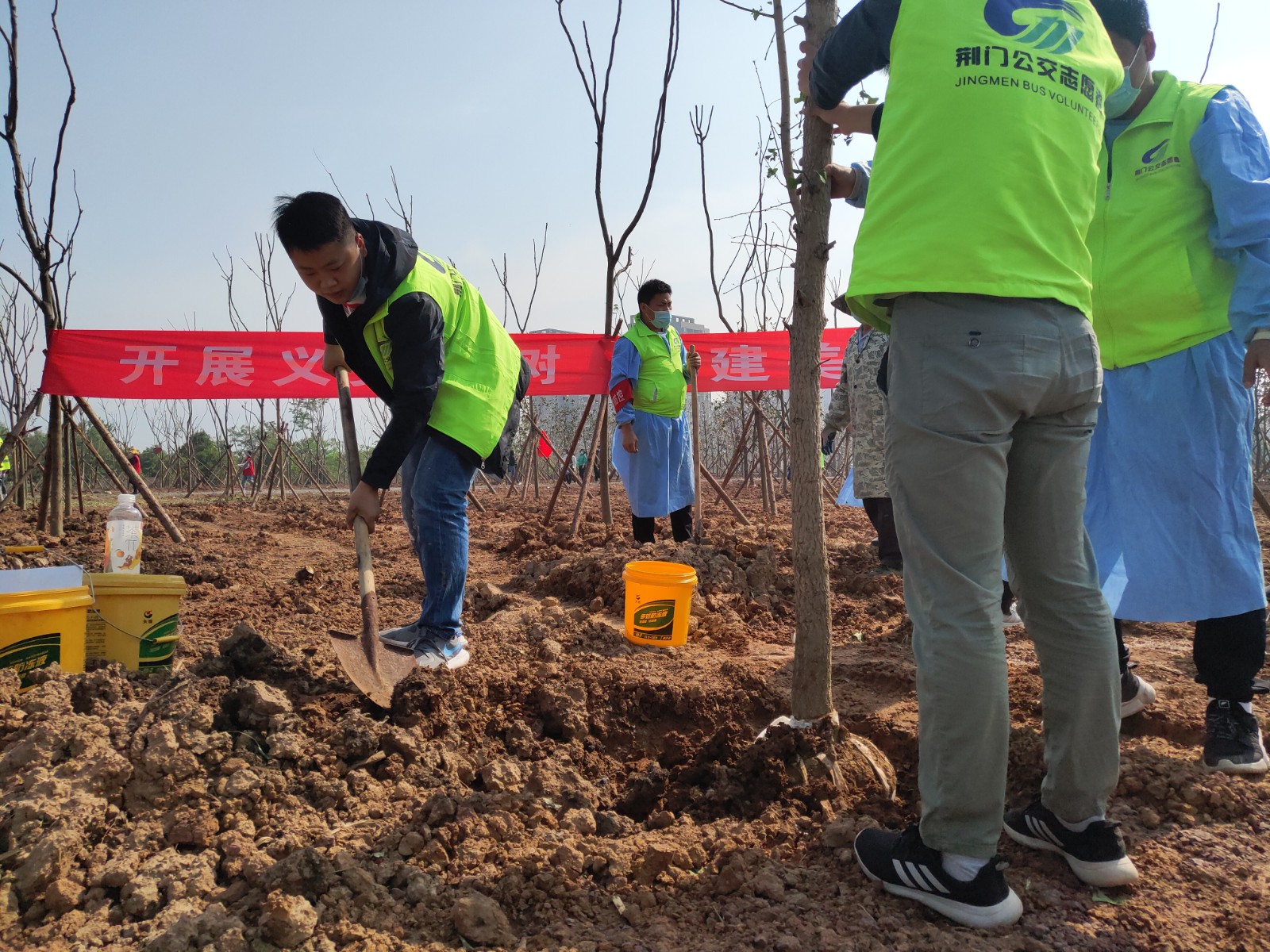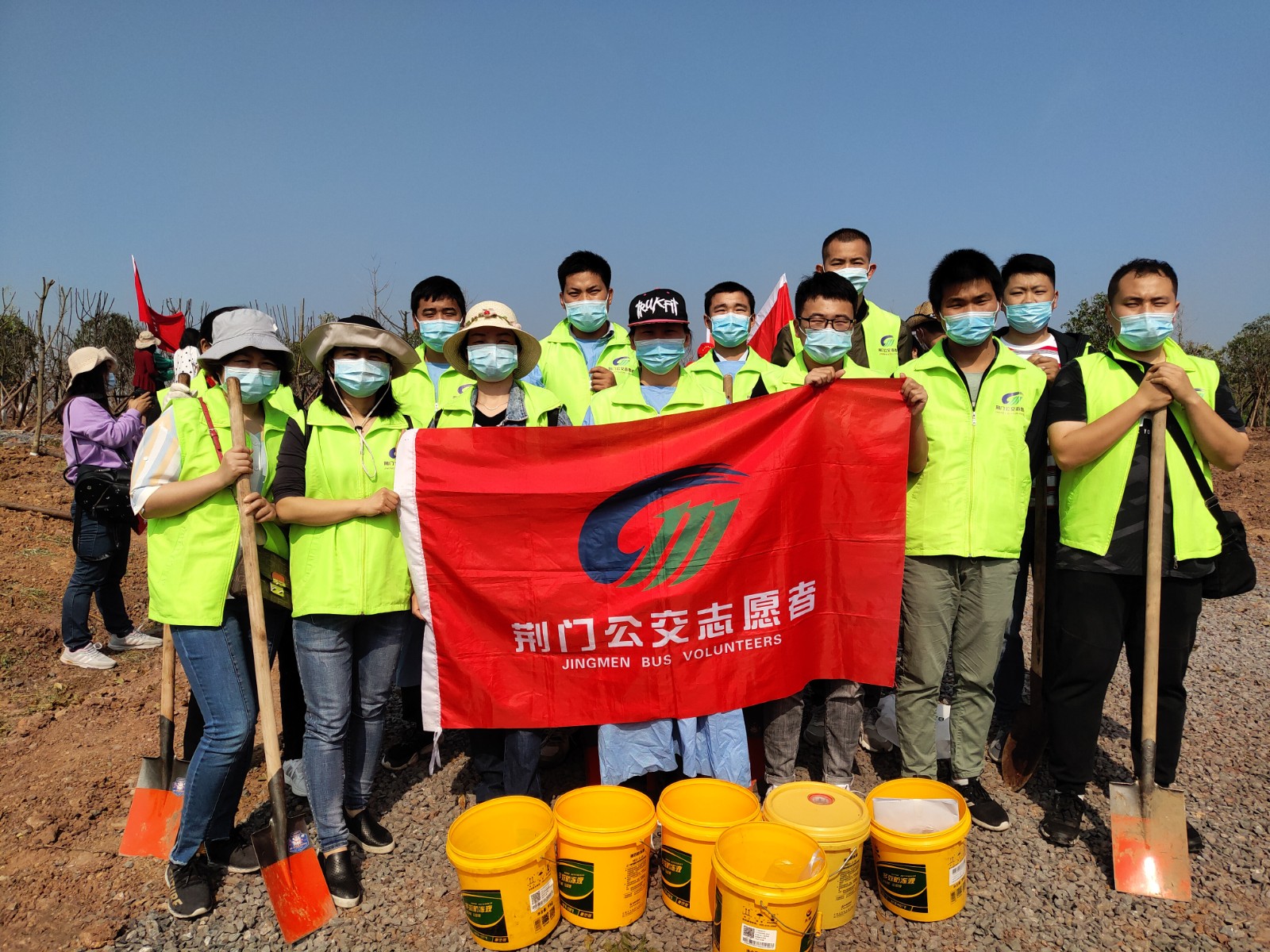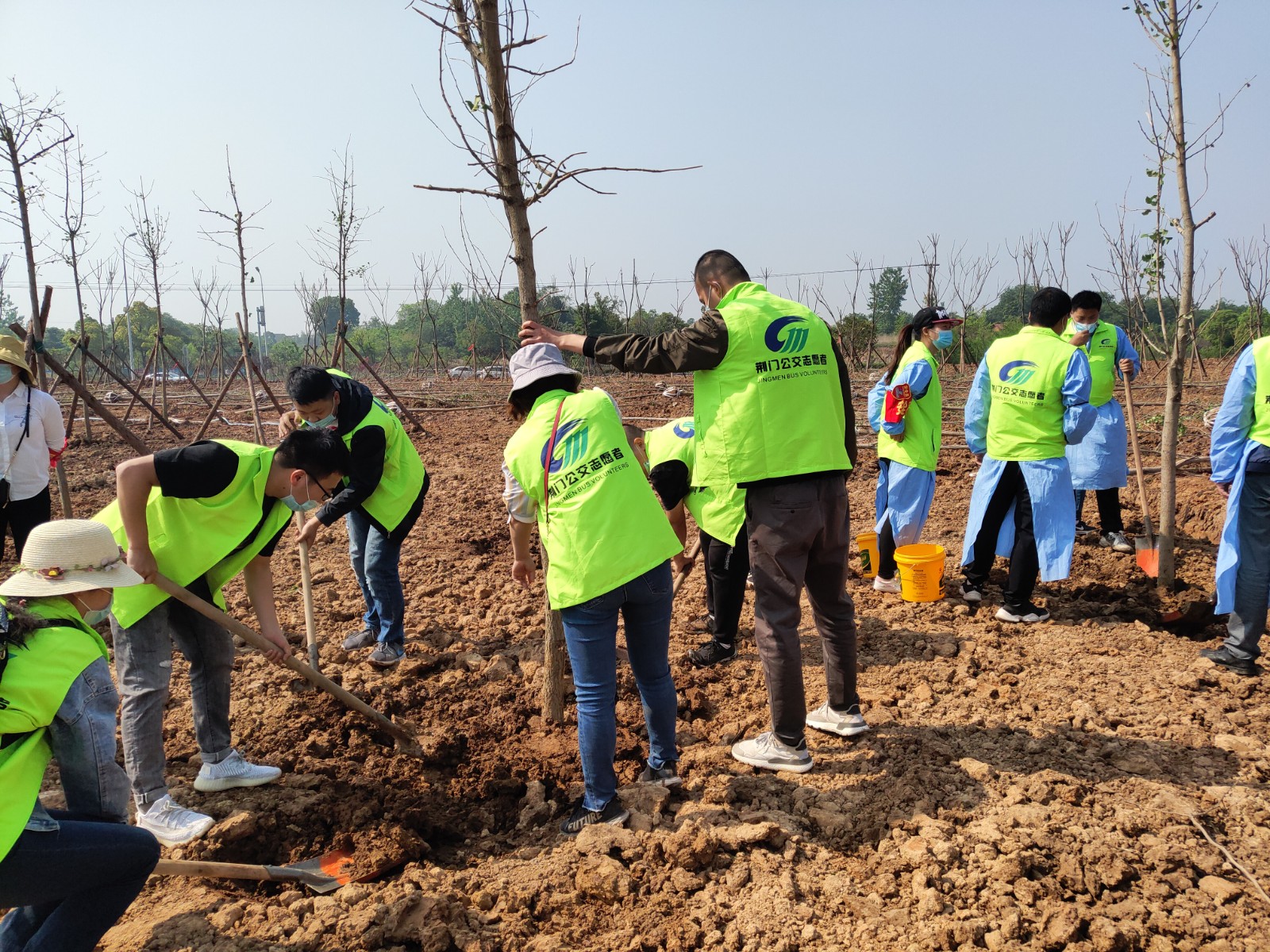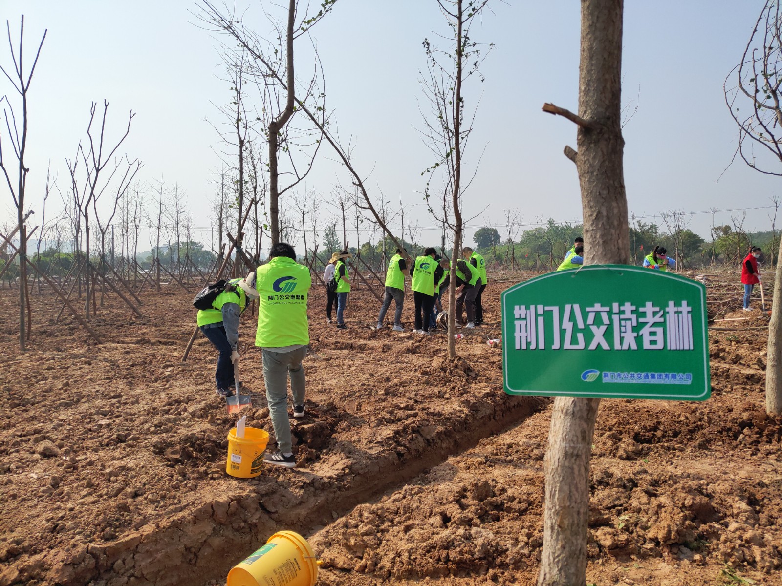 4月29日,荊門晚報第十二屆讀者林植樹活動開展,在漳河大道仙楊路植樹點,上百晚報讀者、志愿者隊伍參加了植樹活動。荊門公交集團14名公交志愿者積極參與活動,并調(diào)派兩輛公交車進行義務(wù)接送..
