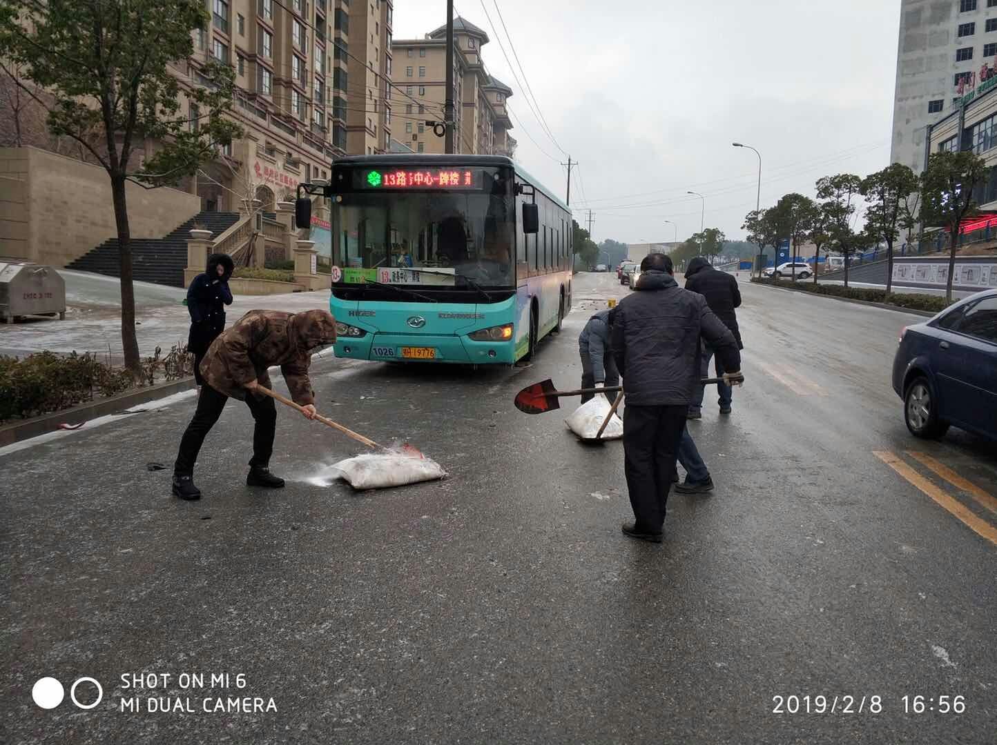 大年初四,降下風(fēng)雪,荊門公交集團為保障公交平安運行,公司領(lǐng)導(dǎo)的帶頭,放下了團年的飯桌上的碗筷,換成鐵鍬加入到除雪隊伍中來。他們不懼嚴寒,從下午13點堅持到18點,完成了福壽居、房產(chǎn)局、天鵝路等路面撒鹽除冰任務(wù)。