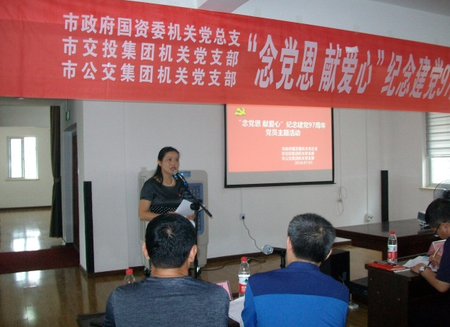 7月3日,為紀(jì)念中國(guó)共產(chǎn)黨建黨97周年,市政府國(guó)資委機(jī)關(guān)黨總支、市交投集團(tuán)機(jī)關(guān)黨支部、市公交集團(tuán)機(jī)關(guān)黨支部以“念黨恩、獻(xiàn)愛(ài)心”為主題,組織黨員們一同走進(jìn)市圓夢(mèng)殘疾人庇護(hù)工場(chǎng),開(kāi)展7月份黨員主題活動(dòng)日活動(dòng)。