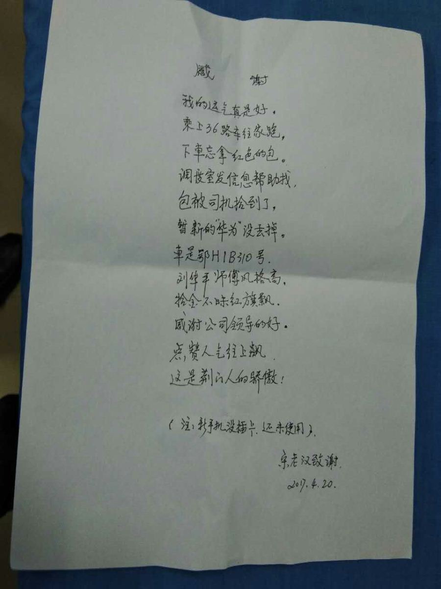 36路司機(jī)拾金不昧,失主作詩贊揚(yáng)