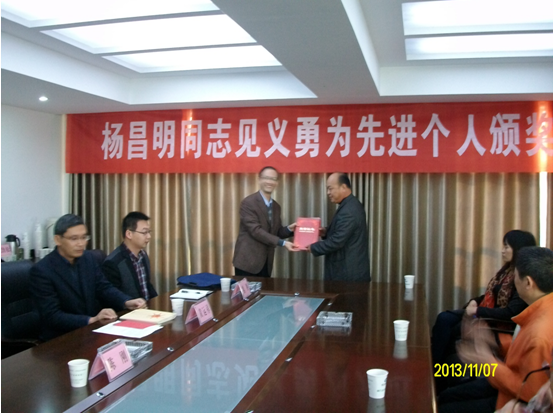 楊昌明,52歲,退伍軍人,也是荊門公交集團一公司39路駕駛員。10月6日下午,楊昌明駕駛鄂H9337公交汽車,行駛至荊門火車站附近,車上一位帶孩子的婦女說錢包被人偷了。車上乘客反映,錢包是婦女正要上車時被小偷偷的,前面跑的那個人就是小偷。楊昌明聽到后,迅速關(guān)上車門,踩下油門,追向小偷。在追上小偷后,楊昌明便打開車門跳下車向小偷猛追過去。小偷見楊昌明窮追不舍,只好扔下錢包跑進(jìn)一條小巷子。本著安全接送乘客,楊昌明撿起錢包后回到車上,并當(dāng)著乘客的面清點了錢包。錢包內(nèi)裝有現(xiàn)金6200元、多張存折(共58000元)、身份證等。隨后,經(jīng)公交公司報案,錢包由民警交還失主。市見義勇為促進(jìn)會及東寶區(qū)社會管理綜合治理委員會表示,楊昌明見義勇為、弘揚正氣的事跡經(jīng)包括本報在內(nèi)的媒體宣傳報道后,受到社會各界廣泛好評和群眾的一致稱贊。經(jīng)研究決定,授予楊昌明見義勇為先進(jìn)個人稱號,并分別獎勵1000元、500元人民幣。